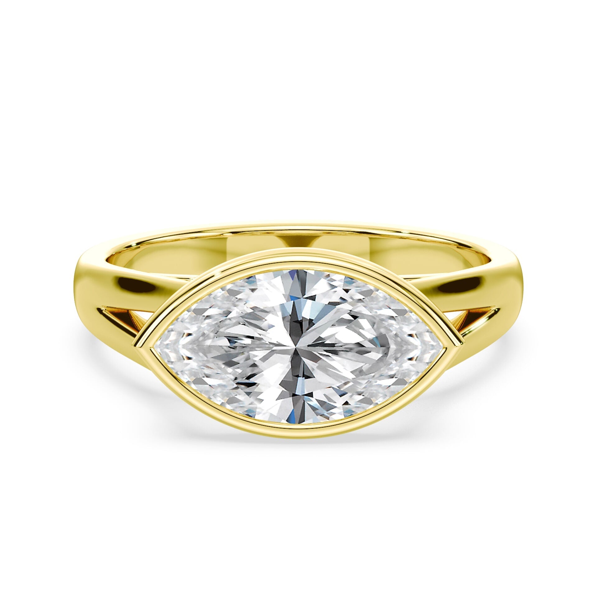 Marquise Cut East-West Split Cathedral Bezel Ring